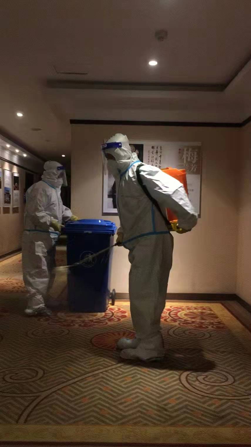 閉環服務期間,客房部員工面對疫情不畏懼不退縮,不計較個人得失,甚至有的同志帶病工作,卻仍然義無反顧堅守崗位,累計閉環54天。11月10日,入住西樓的84名醫護人員臨時通知撤離,由甘肅省人民醫院緊急抽調的101名醫護人員入住換防。當時飯店其他員工都在居家辦公,客房部18位輪休人員第一時間主動請纓,努力說服家人,自主到社區辦理通行證后趕到飯店,投入緊張的客房和公共區域衛生清掃與消殺工作,直到凌晨2點。在這個特殊的時刻,飯店客房部員工筑起了牢固的防疫堡壘,堅守著這個特殊的“戰場”,他們的默默奉獻與守護也成為了醫護人員眼中最可愛的“逆行者”。