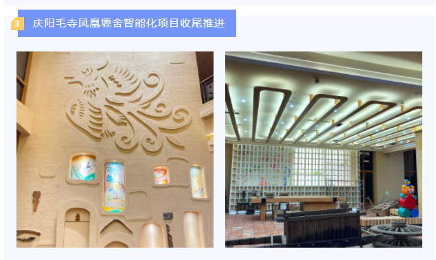 作為集團內部各相關子公司信息化工程項目的承接方,智慧文旅在年末關鍵時期,精準聚焦年度項目、任務目標節點,嚴格對照集團公司劃定的項目收官時限,倒排工期、兵分三路,星夜兼程趕赴項目現場,緊密對接明確業主需求,協調供貨商加班排產,督促施工單位快速復工,加班加點搶追項目進度,全力以赴、保質保量完成項目交付任務。